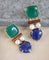 Our Adina Earrings are crafted in 18k gold plated brass, vibrant Green Onyx, Lapis and a highlight of Pearls.